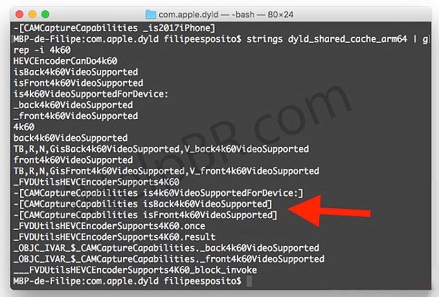 اما به تازگی اطلاعات جدیدی توسط «iHelp» از گوشی آیفون 8 اپل منتشر شده است، آنها به کدهای اصلی هوم پاد آیفون 8 دست پیدا کرده و اطلاعات این گوشی را پیش از رونمایی آن فاش کردهاند. بر اساس این گزارش دوربین اصلی این گوشی قابلیت فیلمبرداری با کیفیت 4K و 60 فریم بر ثانیه را داراست. همچنین در این گزارش ذکر شده که ممکن است دوربین سلفی آیفون 8 نیز مانند دوربین اصلی این گوشی با کیفیت 4k عرضه شود.