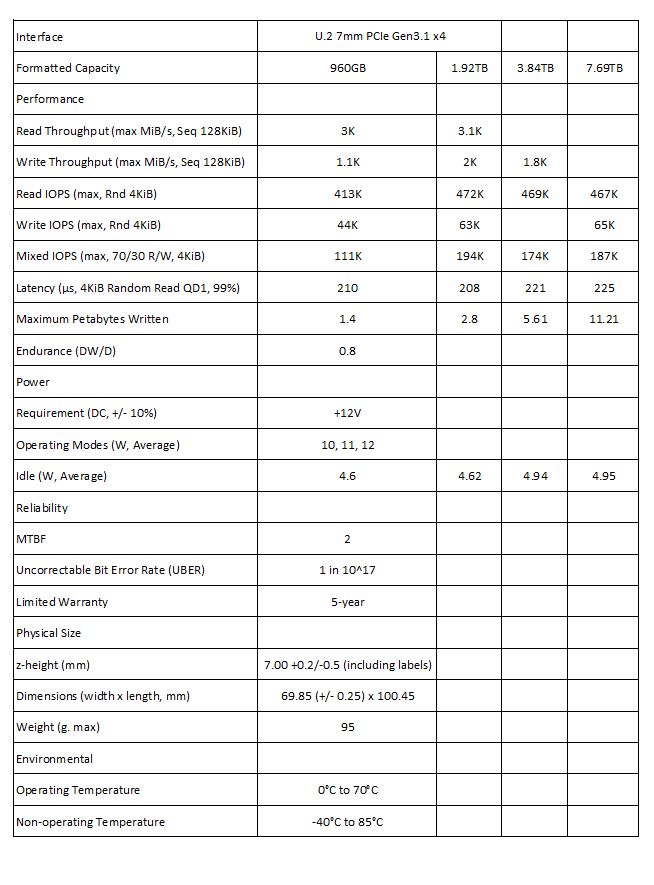 در جدول زیر می توانید مشخصات فنی کامل این SSD های جذاب را مشاهده کنید: