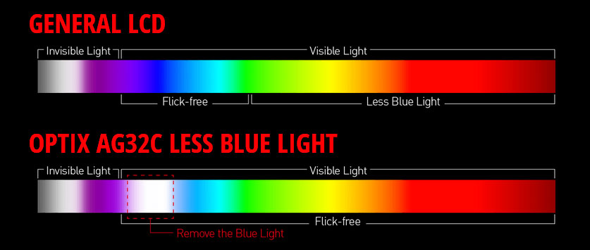 Optix AG32C در مقایسه با مانیتورهای عمومی حداقل 20٪ پوشش gamut بیشتری دارد و در نتیجه گیمرها رنگ ها و جزئیات واقع گرایانه تر و پالوده تر را تجربه می کنند.